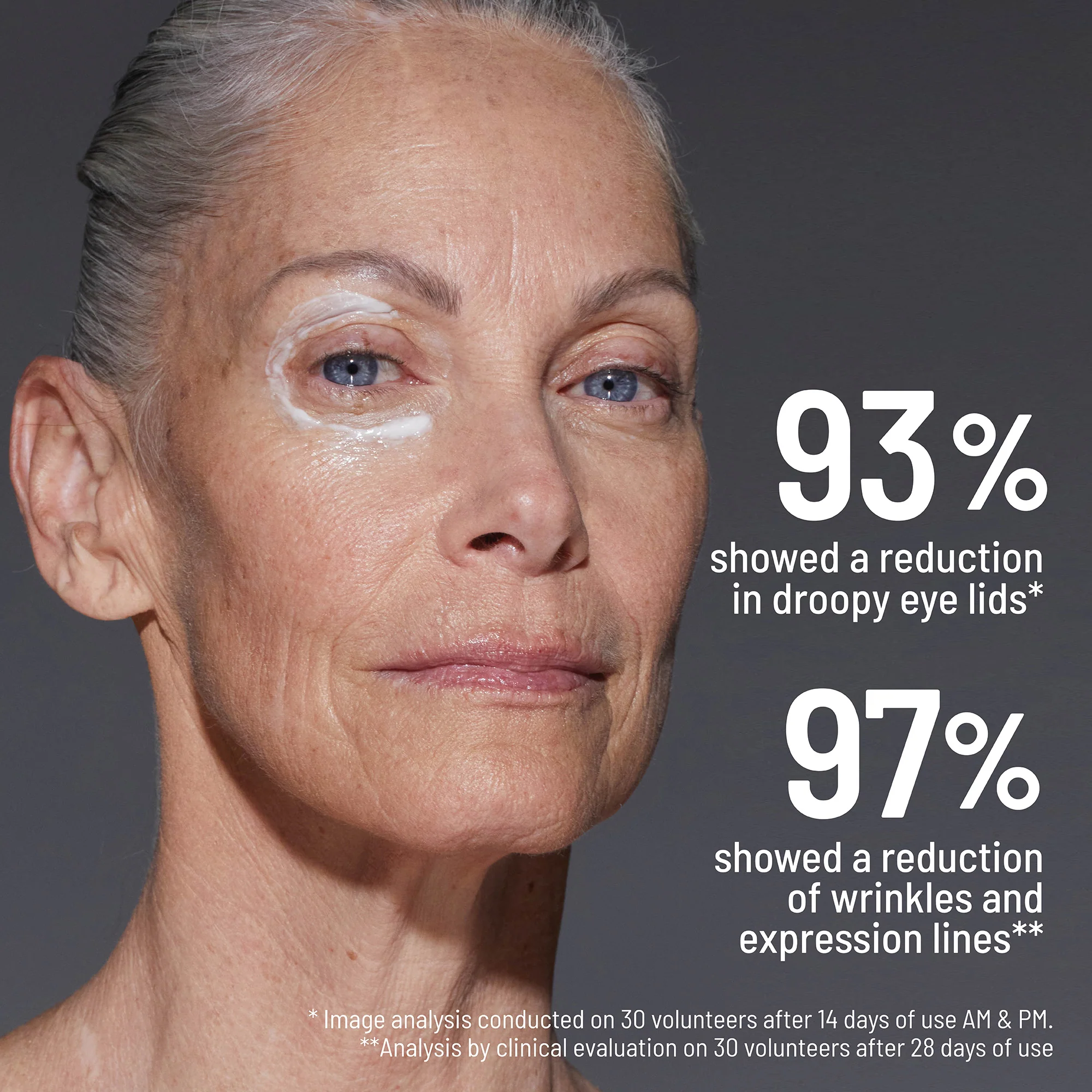 - 87% of subjects showed improved skin texture around the eye contour area after using the eye tightening cream.*